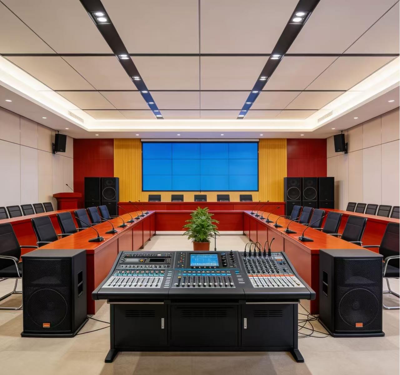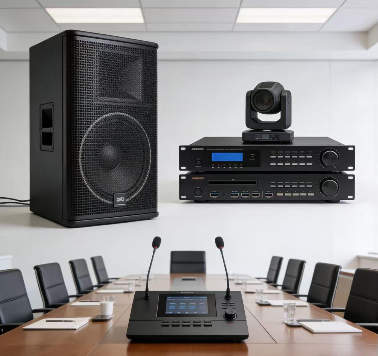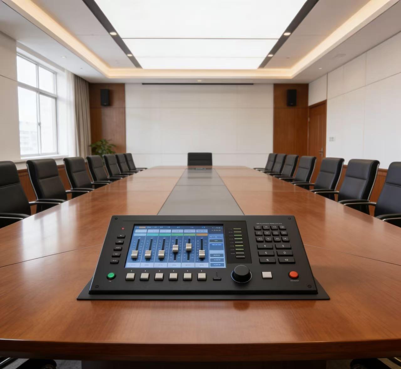 2. 音频处理器(调音台):介于话筒和功率放大器之间,核心作用是对话筒输出的微弱电信号进行“优化、修正、分配”,让声音更清晰、均衡、适配后续设备。