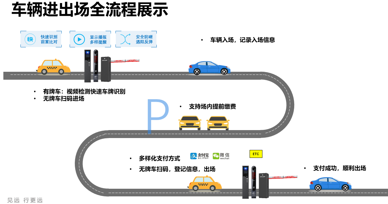 为*大限度缩短出口等待时间,我们提供两种便捷的离场缴费方式:场内提前支付:车主在返回车辆前或启动车辆时,扫描场内二维码提前缴费,享受“缴完即走”体验。出口车道支付:车辆驶至出口,扫描车道码完成支付(支持微信、支付宝等),道闸自动抬杆。